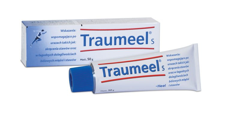 Działanie: Homeopatyczny produkt złożony, działa przeciwbólowo, przeciwobrzękowo i przeciwzapalnie. Składniki preparatu zostały dobrane w sposób, który uwzględnia różne aspekty zjawiska procesu zapalnego w narządzie ruchu, towarzyszącego każdemu urazowi. Traumeel S jest skutecznym lekiem w terapii urazów sportowych, stosowanym przez sportowców wysokiego wyczynu, a za ich przykładem, przez osoby amatorsko uprawiające sport. Lek usuwa przyczyny bólu mięśni i może być stosowany w długotrwałej terapii. Traumeel S, ze względu na mechanizm działania, stosowany jest w leczeniu stanów zapalnych - nie tylko tych będących efektem urazu. Dlatego lek zalecany jest pacjentom z przewlekłym bólem w terapii przebiegu chorób zapalnych i zwyrodnieniowych narządu ruchu.