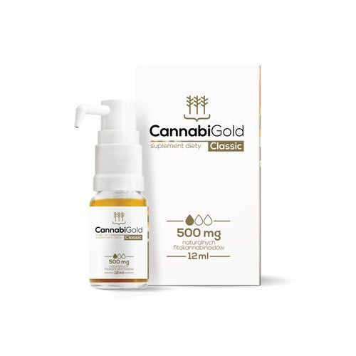 CannabiGold Classic zawiera pełne spektrum naturalnie występujących w konopiach kannabinoidów, flawonoidów i terpenoidów (m.in. CBD, CBDA, CBC, CBG, CBDV, BCP), w tym gwarantowane minimum 500 mg naturalnego CBD.