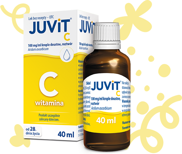 Juvit C Krople to preparat witaminowy przeznaczony do stosowania w celu uzupełnienia poziomu witaminy C w organizmie. Witamina C jest niezbędna do prawidłowego funkcjonowania układu odpornościowego, wspomaga zdrowie skóry, a także uczestniczy w procesach wytwarzania kolagenu, co ma znaczenie dla zachowania elastyczności i zdrowia skóry, naczyń krwionośnych, zębów oraz dziąseł. Produkt w formie kropli jest wygodny w użyciu, a jego płynna forma pozwala na precyzyjne dozowanie.
