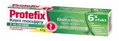 Protefix krem mocujący Z ALOESEM silnie mocuje protezę, a jednocześnie redukuje stany zapalne, które są problemem wielu pacjentów protetycznych.